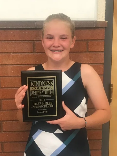 In 2016 Maple Grove Elementary created the Drake Durkee Character Award. This award will be presented to a student who has exhibited hard work, a great attitude, and great character at graduation/continuation each year.